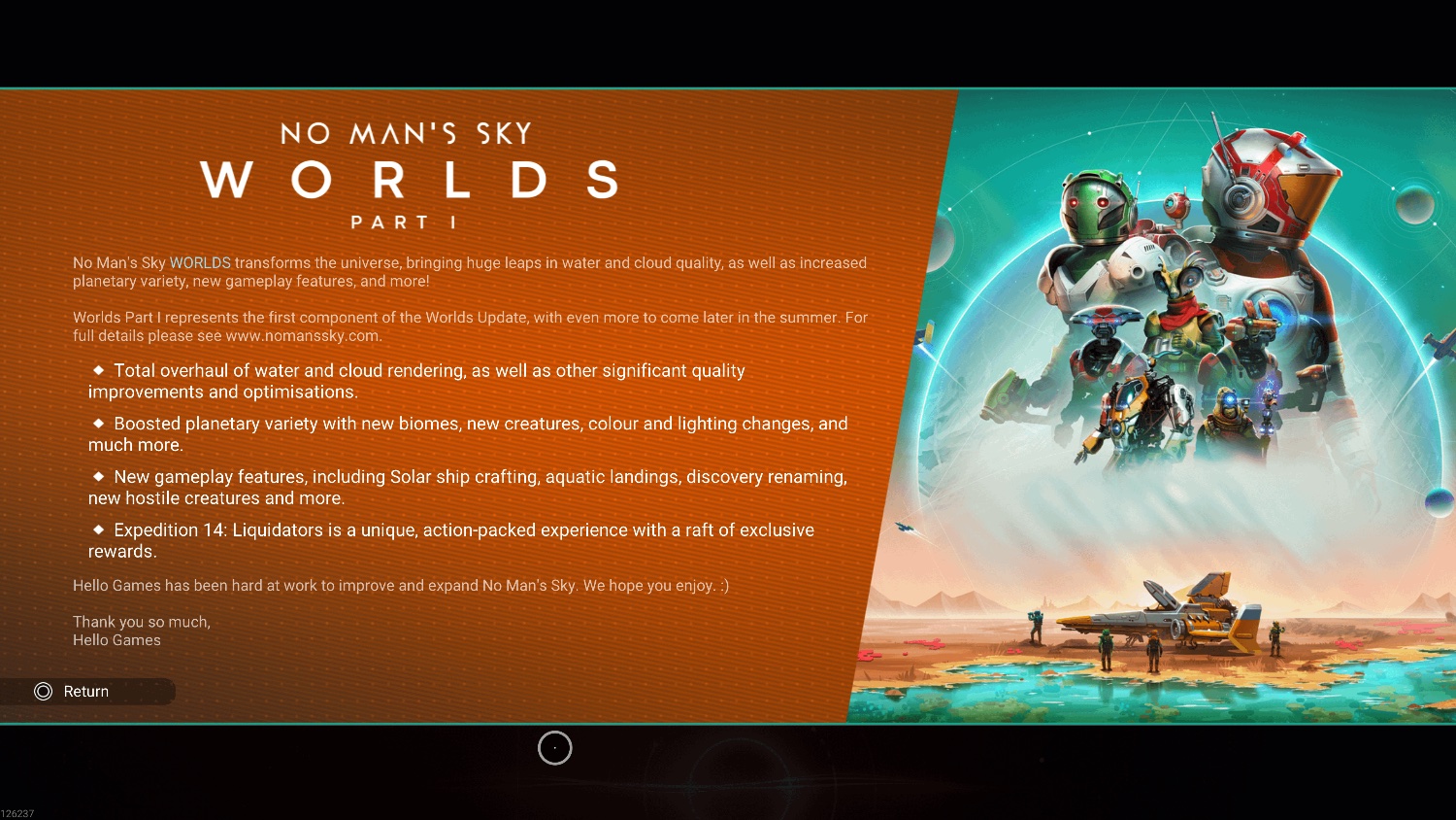 Hello Games has been hard at work to improve and expand No Man’s Sky. We hope you enjoy. :)