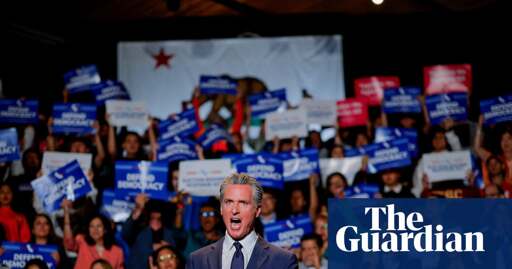 Newsom, joined by congressional Democrats and legislative leaders, unveiled a plan, known as the election rigging response act, that would override California’s independent redistricting commission and draw new congressional lines – a direct counter to a Texas effort, sought by Donald Trump, to push through mid-cycle maps that could hand Republicans five extra US House seats. The governor vowed the move would “neuter and neutralize” Texas’s proposal.