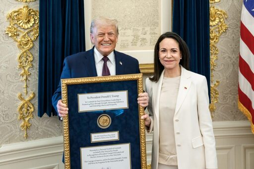 Yesterday at the White House, Venezuela’s opposition leader María Corina Machado, who was awarded the prize late last year, gave her medal to the POTUS in recognition of what she described as his committment to Venezuela’s freedom. This came after Trump greenlit an American operation that has seen Venezuela’s leader Nicolás Maduro arrested and taken to the U.S.