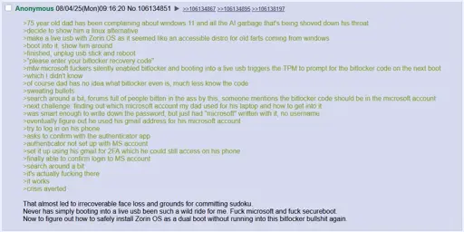 Did I mention Bitlocker likes to trip itself? There are waves of the same laptop models suddenly requiring the key at the same time. I’ve seen a dead battery, a random update, or an unsafe shutdown trip the encryption. MS might say they made it to protect its users, in reality is just more planned obsolescence.