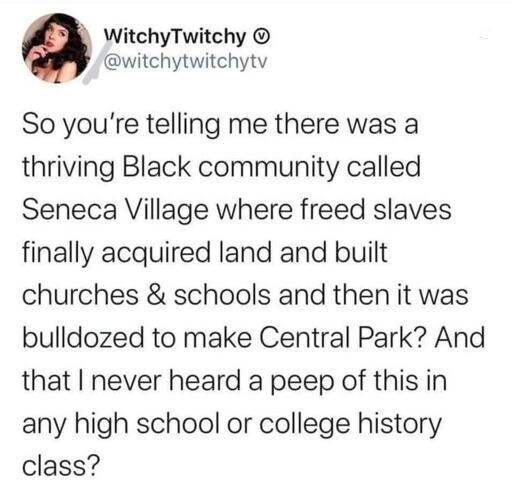 Just about everywhere in the US was taken from someone. And almost always a marginalized individual. All the way back to the native americans. It how human be human apparently.