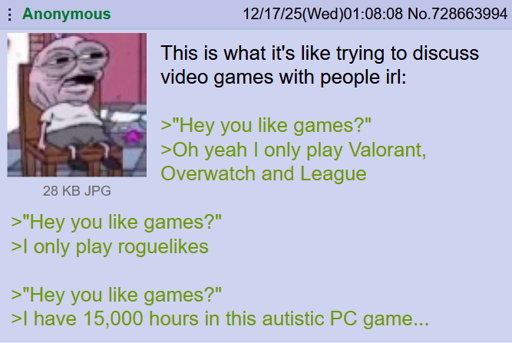 Anon wants to talk about the games they like, not the games other people like.