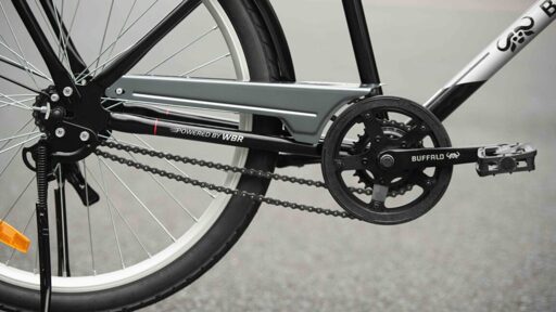 The S2 model aimed to give riders an uphill climbing gear but without introducing the complexities of a gear-shifting derailleur, tensioned cables, and handlebar shifters. Engineers at SRAM came up with a solution that’s hard to imagine for other bikes but not too hard to grasp. A freewheel in the back has two cogs, with a high gear for cruising and a low gear for climbing. If you pedal backward a half-rotation, the outer, higher gear engages or disengages, taking over the work from the lower gear. The cogs, chains, and chainrings on this bike are always moving, but only one gear is ever doing the work.